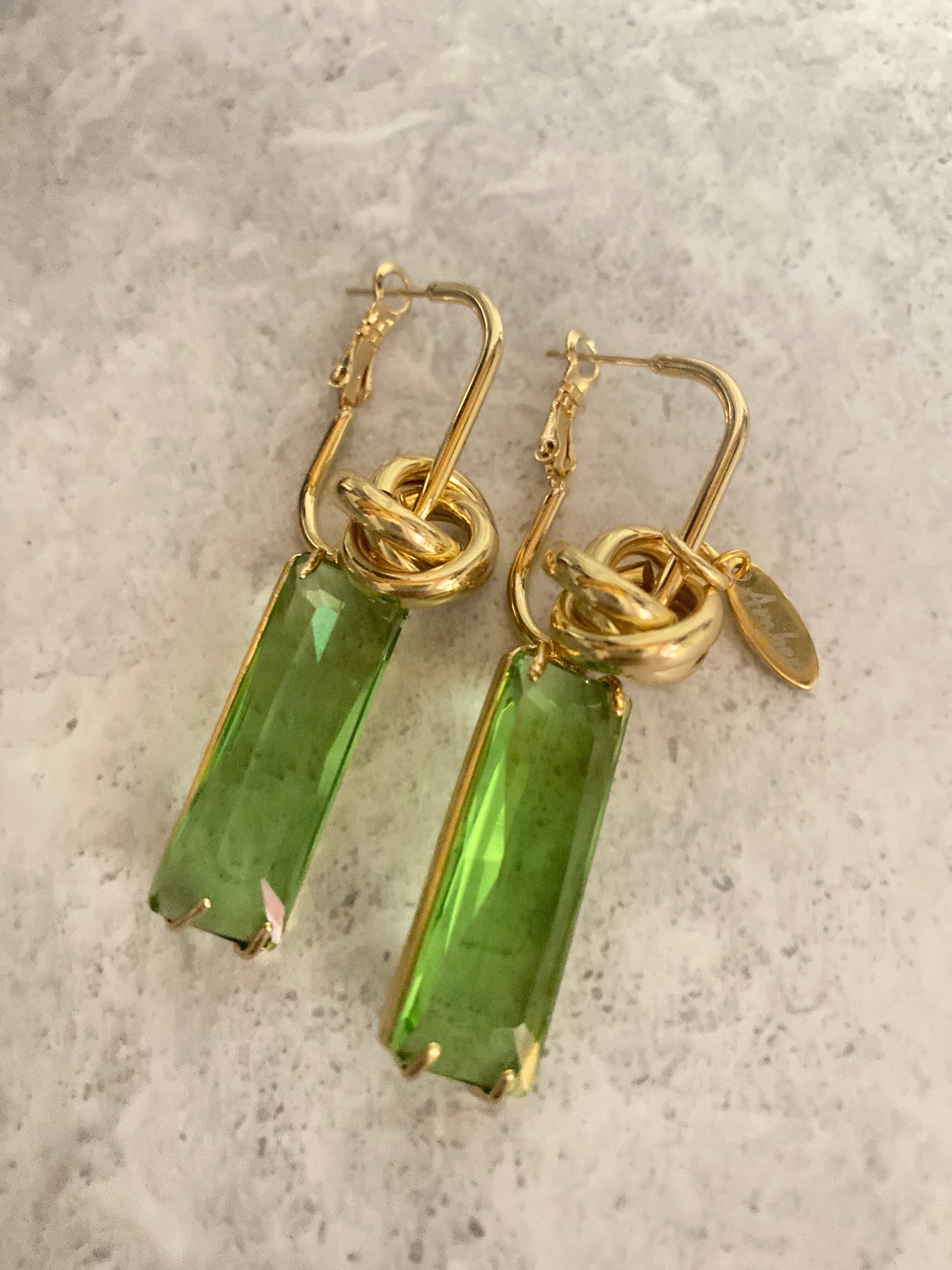 グリーンのビジューが印象的なピアス